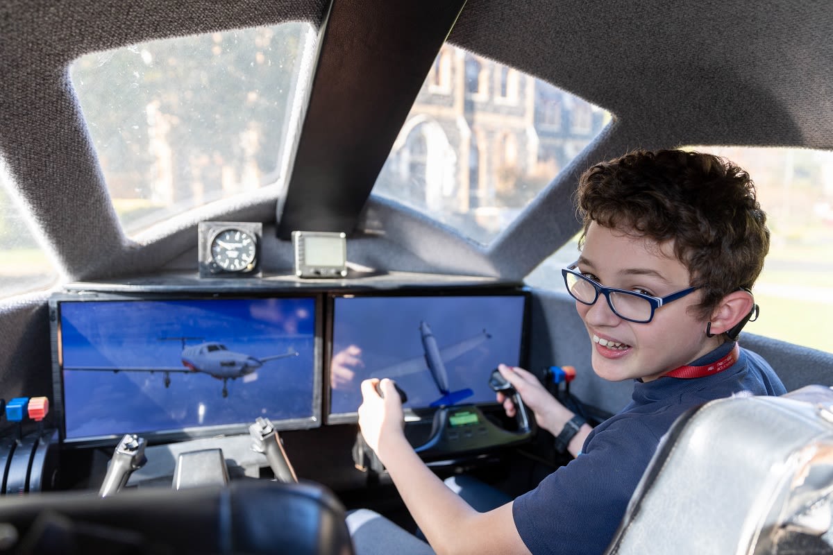 But it’s the second part of the program that really captures the imagination of kids from prep to Grade 6: an exciting school incursion, featuring a life-sized Flight Simulator.