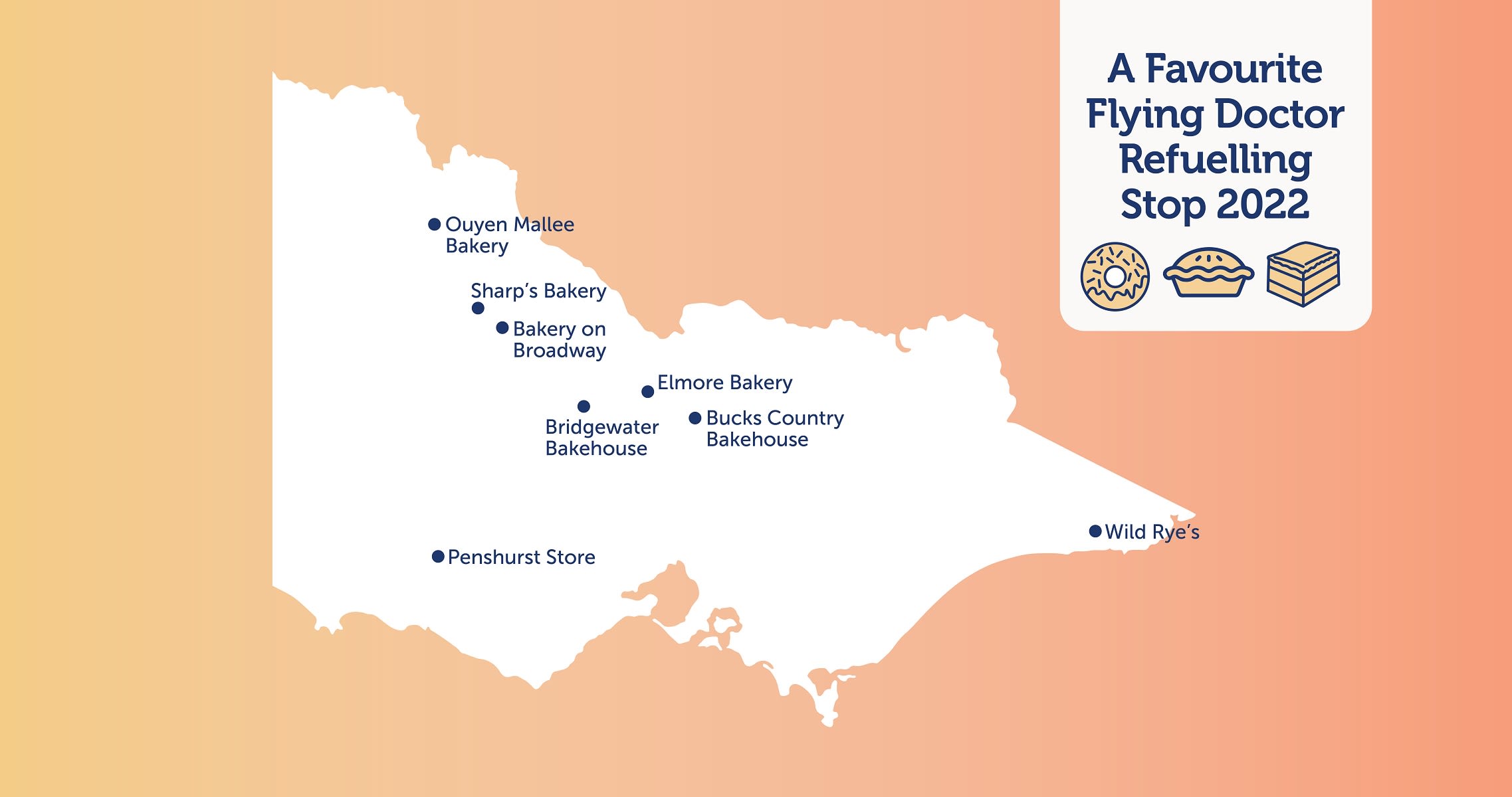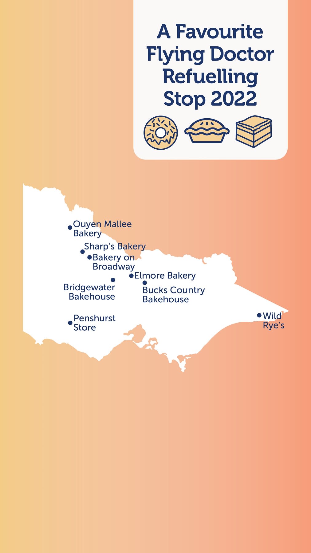 Did we leave your favourite country bakery off our list? Nominate them to become an official Flying Doctor Refuelling Stop in 2023 by email us at communications@rfdsvic.com.au.