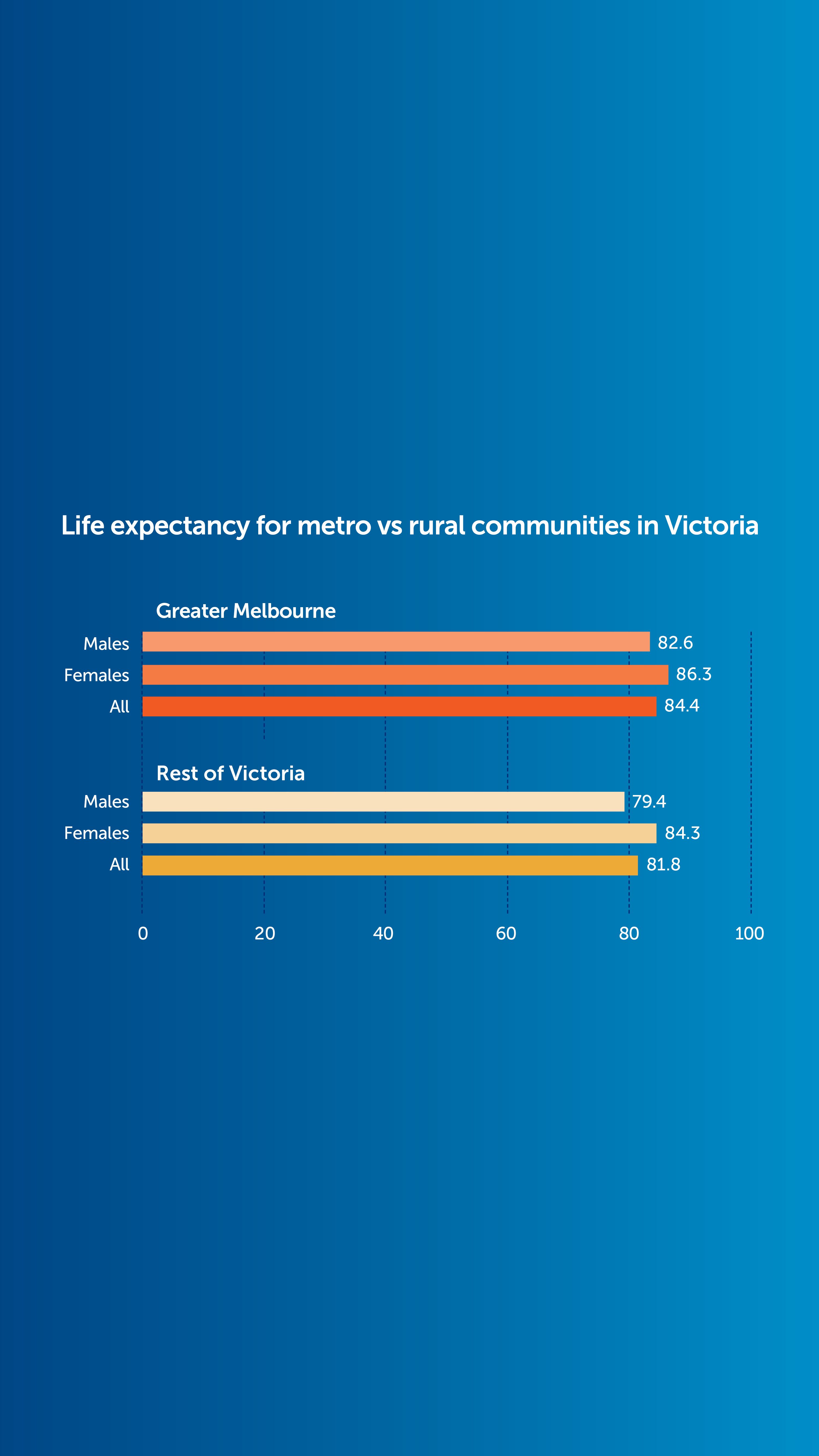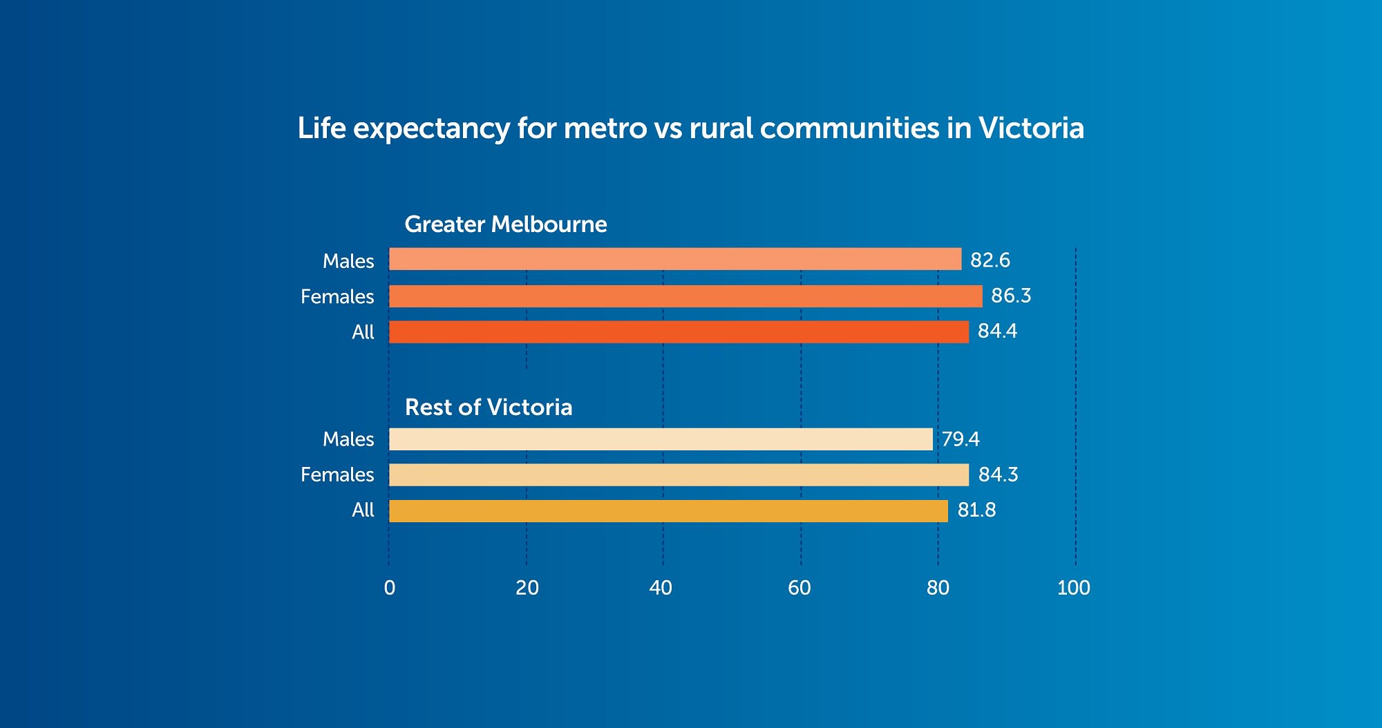 Those in rural and remote parts of Australia and Victoria live shorter lives, acquire greater levels of chronic disease, experience poorer mental health and have a much harder time accessing many primary health care services, let alone specialist care.